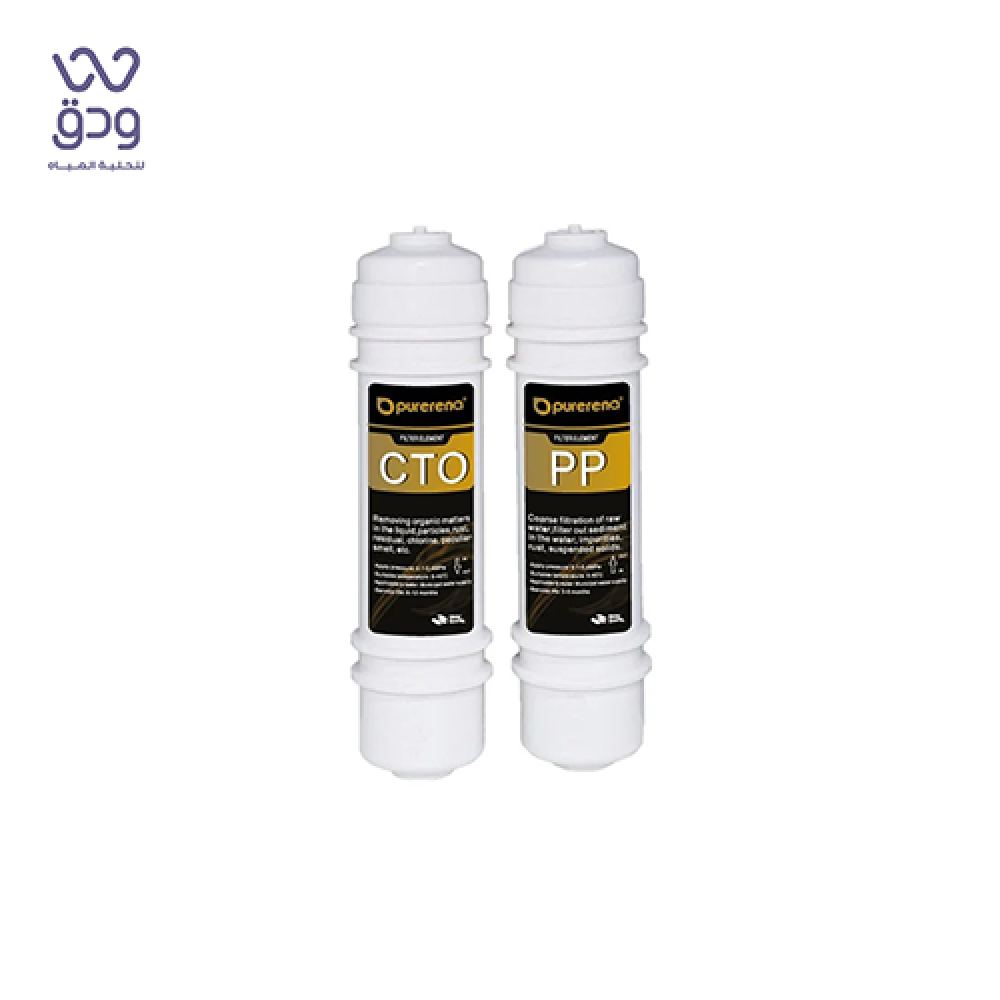 - صُمم طقم فلاتر مرحلتين من بيورينا لتنقية الماء من الشوائب والأتربة كافة، لتحصل على مياه نظيفة ونقية.