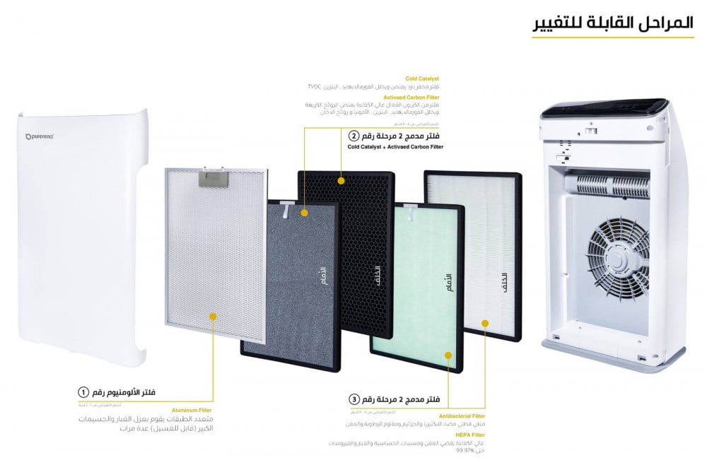 وصف مراحل طقم غيار فلاتر كامل لمنقي الهواء بيورينا
